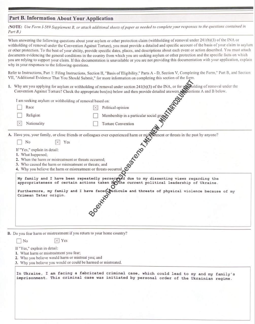 «Военный обозреватель»: Умеров подал документы на убежище в США из-за «преследования киевским режимом»