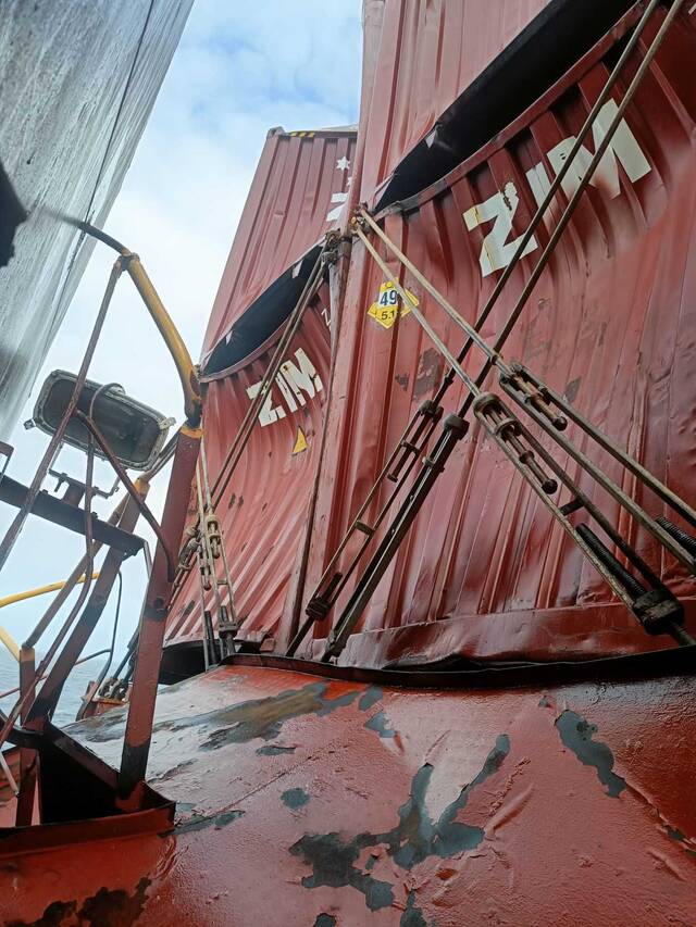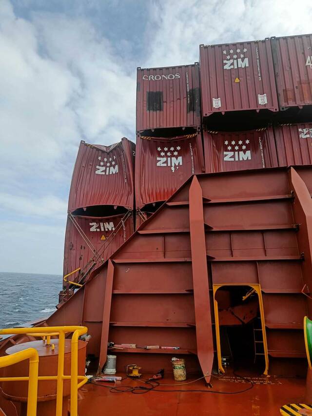 Обратите внимание, на фото контейнеры разбиты метрах в 10 высоте. Это видел дурень такие волны и на скорости прямо в них врезался.