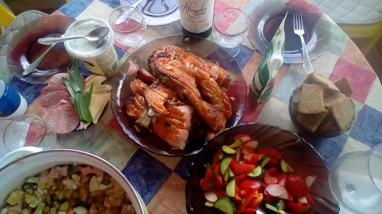 Да, еще картошечка , просто пока не поставили на стол... а потом десерт, мороженое с клубникой.... и чай