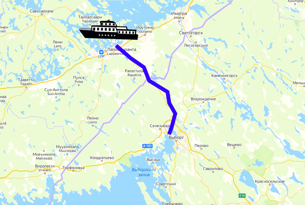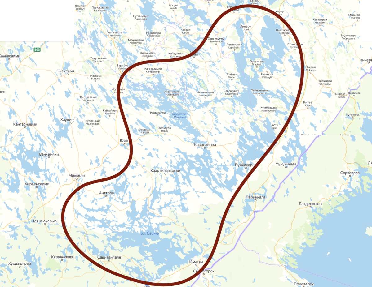 Поэтому по высочайшему решению было начато строительство канала из озера Сайма в Финский залив. Вот по такому маршруту: