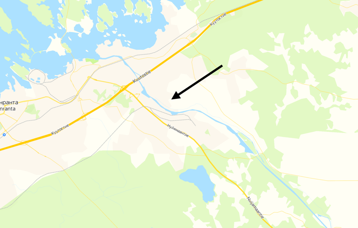 Но это только так кажется, потому что Сайма – это не просто озеро (отмеченное стрелочкой), а целая система озёр, соединенных в единый водоем естественными водными перемычками: