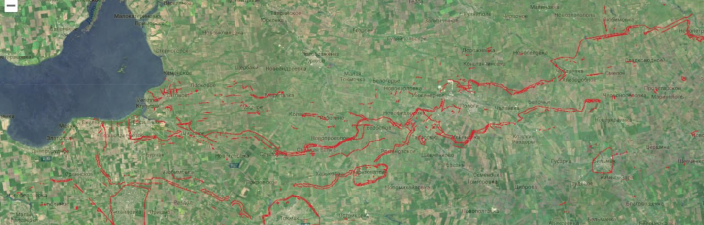 Примерная карта российских оборонительных линий на Южном направлении, составленная по информации западных средств спутниковой разведки