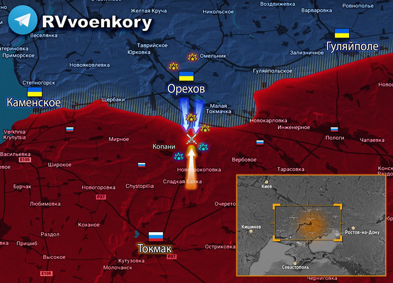 ▪️ВСУ наращивают наступательные действия на Ореховском направлении на линии Работино-Вербовое.