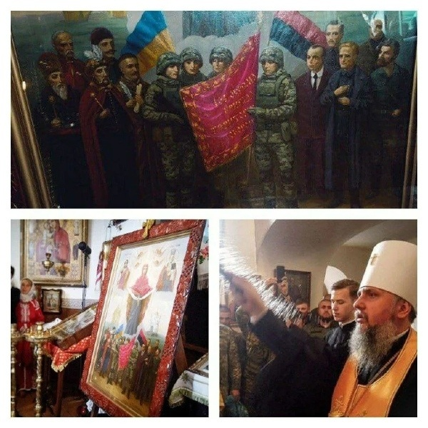 «Поздравляю с разоблачением "ПЦУ". Раскольники, а на самом деле западные диверсанты, внедрённые Вашингтоном в православную церковь, изобличили сами себя. "Митрополит" раскольнической "Православной церкви Украины" Епифаний (глава раскольников Сергей Думенко) провёл процедуру, которую украинские военные из теробороны назвали "освящением" живописного одиночного изображения Богородицы с героями современного украинского мифотворчества: Бандерой, Шухевичем, Коновальцем. Это произошло в одном из монастырей на Западе Украины, куда Епифаний приехал в окружении военных», − написала Захарова в своём Telegram-канале.