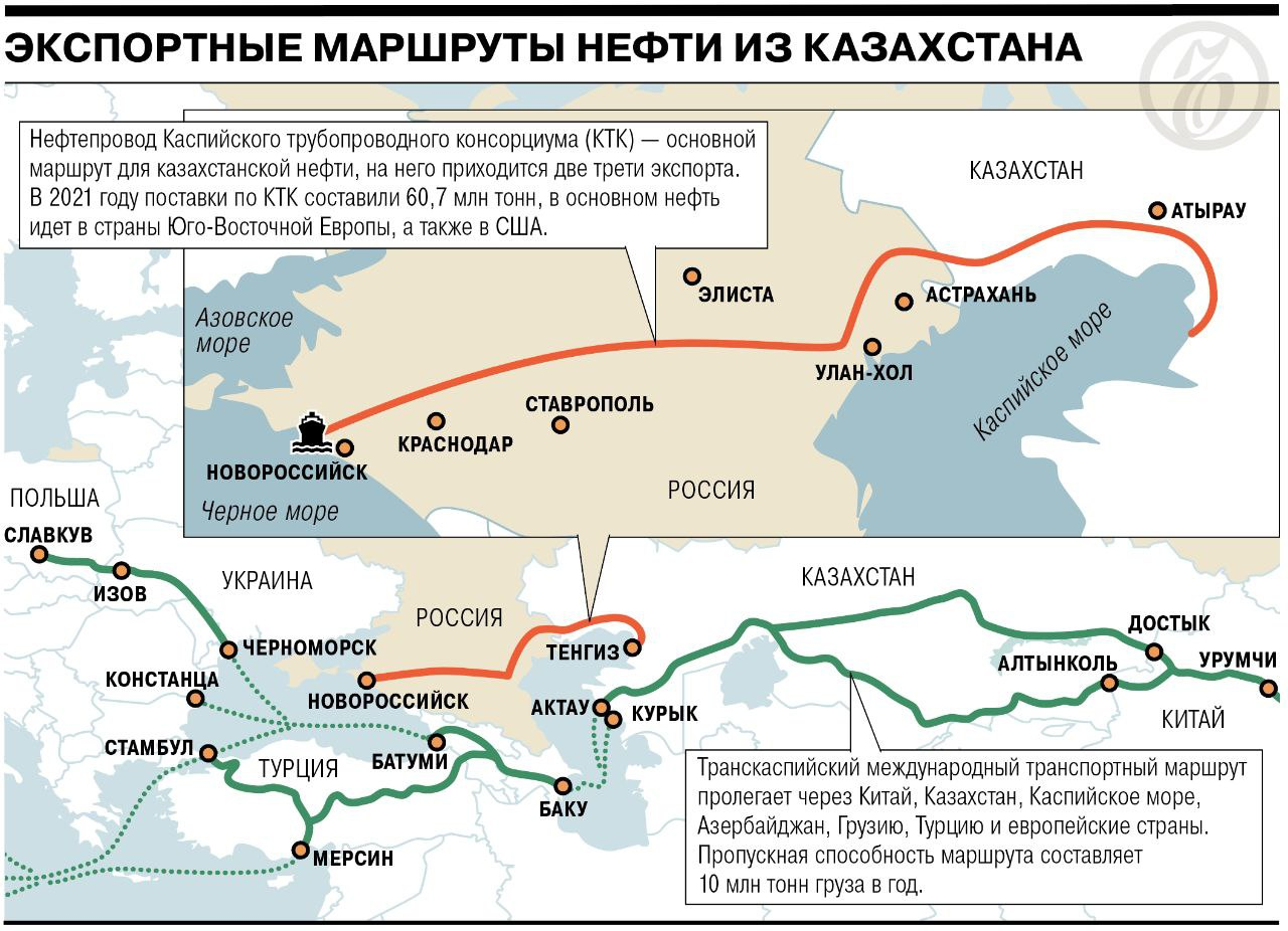 Это по сути - российская нефть. Достаточно сравнить объемы нефтедобычи Казахстана ( часть которой на паях принадлежит российским инвесторам) и объемы нефтяного экспорта из Казахстана ВО ВСЕ СТРАНЫ. (см. rostov.tsargrad.tv/articles/neftjanaja-lovushka-putina-kazahstan-vyhodit-iz-teni_748720) Если бы казахский нефтяной экспорт как-то существенно противоречил интересам России , то российским властям достаточно было прекратить казахский транзит КТК через нефтяные терминалы в Краснодарском крае.
