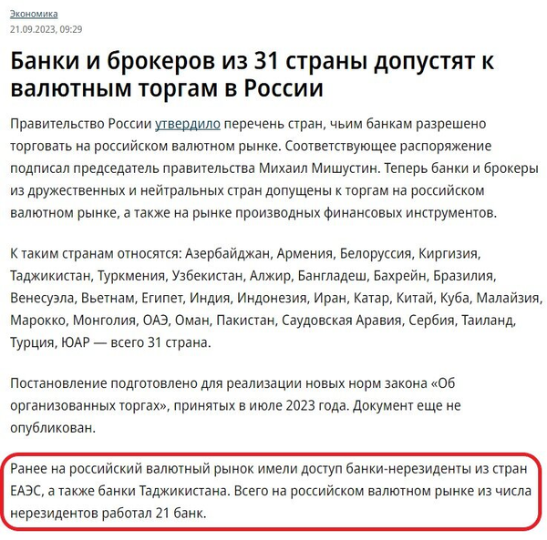 Скажу больше: банки и брокеры из других стран, в основном, получили доступ к валютным торгам в России только осенью 2023 года.