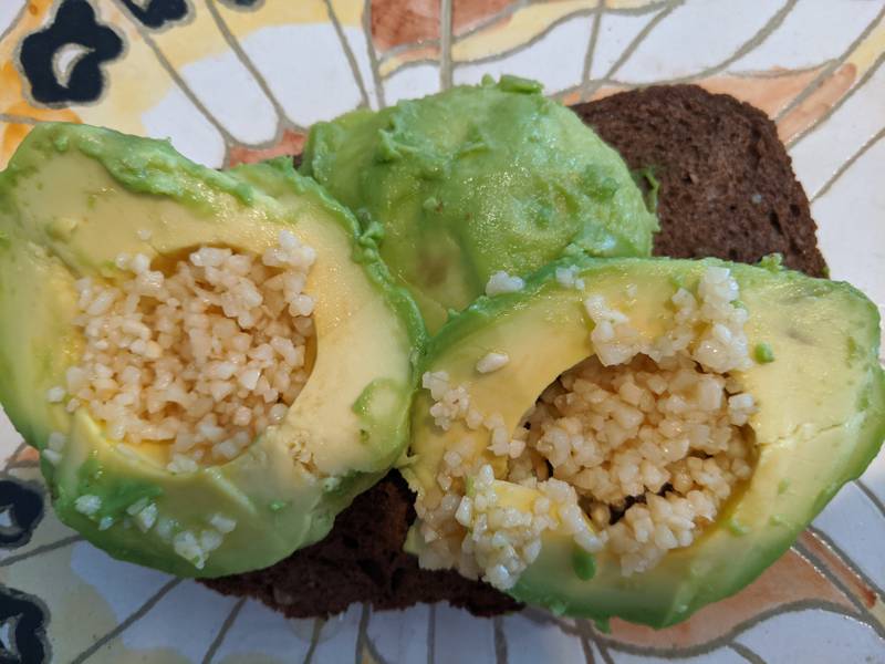 икры нет. Да и не было. Пришлось сделать тост с авокадо. И добавил чеснок. Зря.
