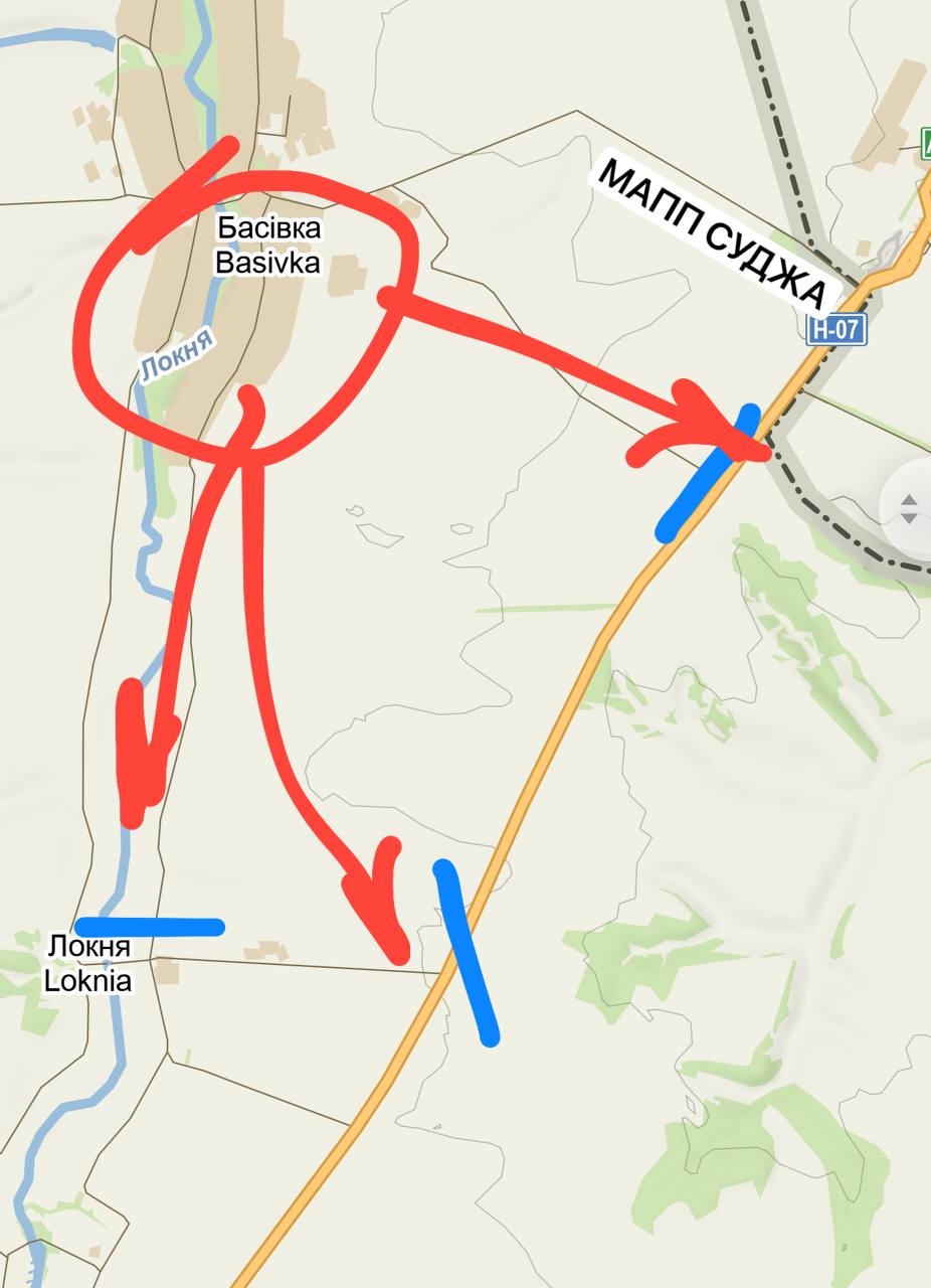 Цель - купировать трассу к госгранице и обрезать пути выхода ВСУ из нп. Олешня и курского приграничья.