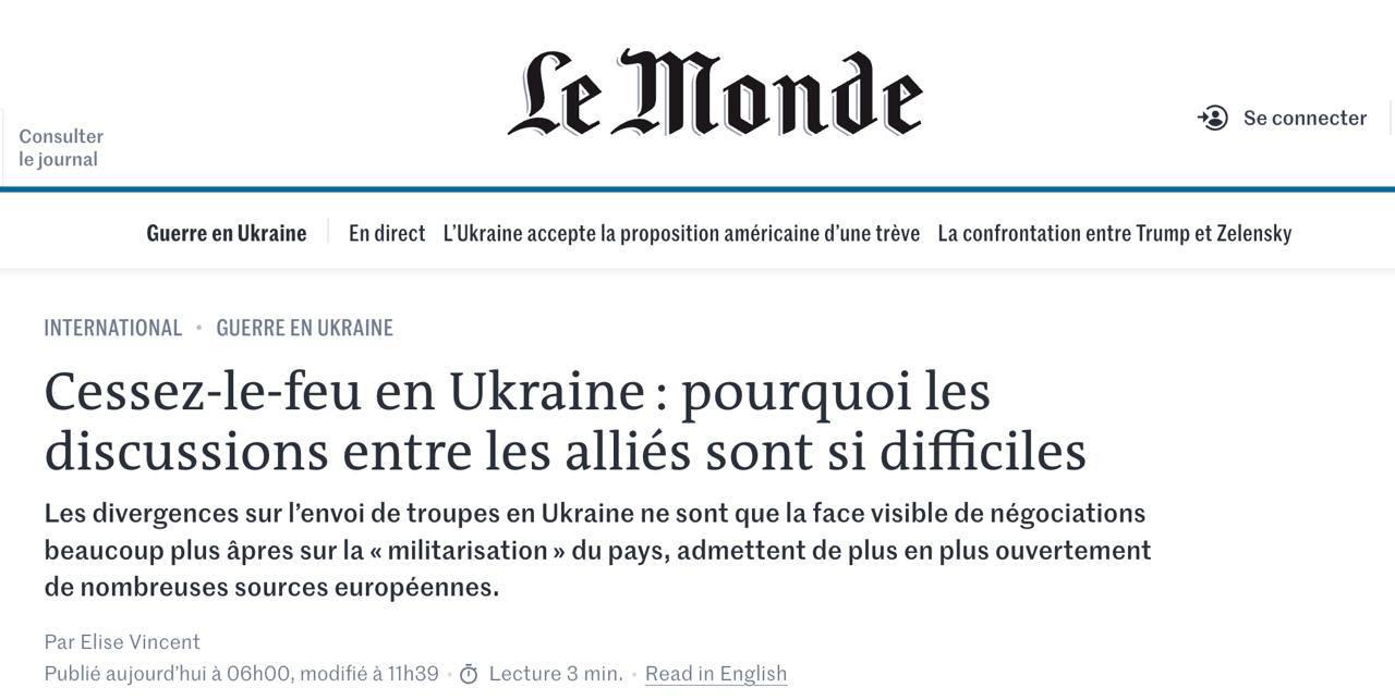 Европейцы никак не могут договориться об отправке миротворцев и военной помощи на Украину, пишет Le Monde.